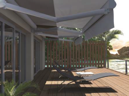Tenda a bracci estensibili su staffe indipendenti laterali fisse che comprendono il supporto braccio e bracci con catena inox e copricatena; è sprovvista di barra quadra. Struttura economica, viene fornita premontata, l’assemblaggio è da effettuarsi in opera.