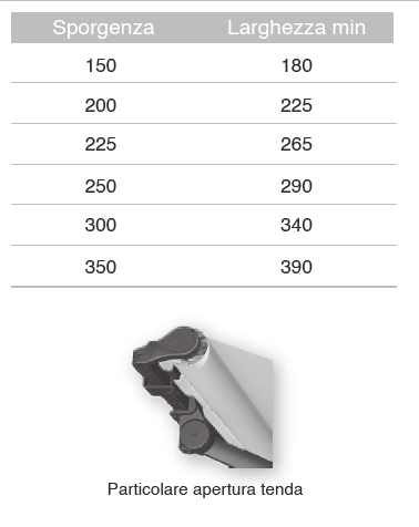 • La sporgenza è la profondità della tenda quando è tutta aperta e determina la zona d'ombra.