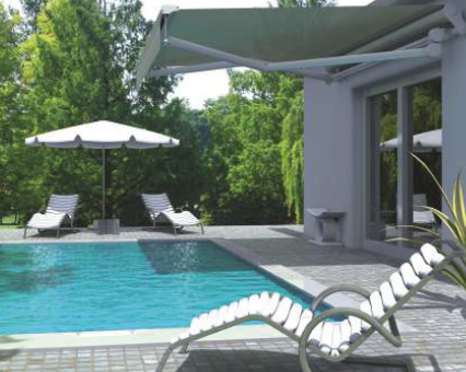 Modello ideale per la copertura residenziale di balconi e negozi dalle larghezze ridotte e dalle sporgenze elevate.