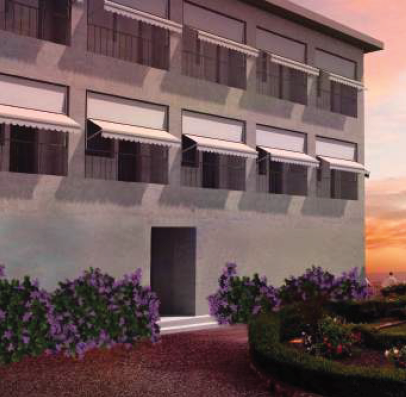 Il telo scorre attraverso guide laterali fissate tra soffitto e ringhiera.