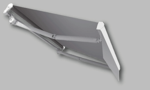 Comando ad argano R.1:11; possibilità di istallare motore o molla di compensazione. Modello ideale per la copertura di balconi, terrazzi e forniture condominiali. Le dimensioni massime consigliate sono di 1000 cm di larghezza e 350 cm di sporgenza.