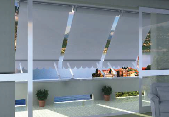 Tenda con comando di apertura ad argano veloce o, su richiesta, a molla.