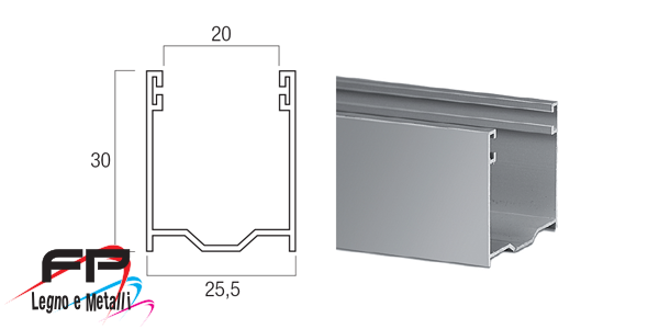 Guida in alluminio estruso A27 30 x 25,5 mm