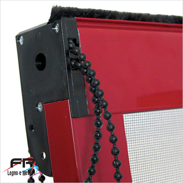 Zanzariera a catena con ingombro di 42mm a scorrimento verticale adatta per porte e finestre, priva di guida a pavimento. E’ dotata di una leggera molla di richiamo per consentire la giusta tensione della rete. Disponibile con rete grigia, a strisce, filtranti e oscuranti.