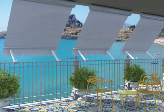 Struttura particolarmente adatta per balconi; (è simile alla 7000 S); viene fornita completa di cassonetto. Modello dotato di braccetti snodabili da 60 cm a doppio movimento, sporgenti dalla ringhiera.