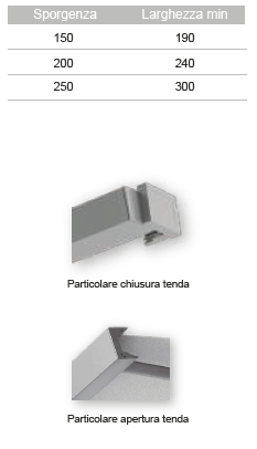 Le dimensioni massime consigliate sono di 400 cm di larghezza e 250 cm di sporgenza.