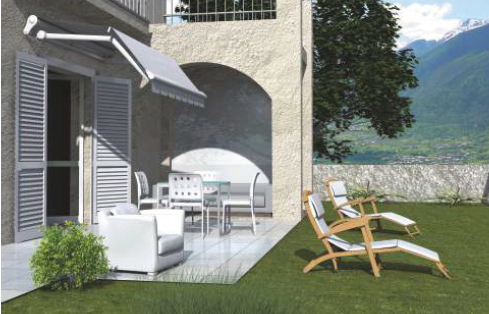 Tenda a bracci a pantografo, caratterizzata da una doppia e accentuata inclinazione del telo. Supporti montati su barra quadra 40x40. Profilo frangivento intermedio, incernierato sui gomiti dei bracci, tramite carrelli autocentranti, guidati a cavo. Tale sistema riduce la formazione di sacche d'acqua anche in condizioni di minima pendenza del telo. La grande robustezza e l'estetica curata sono le principali caratteristiche. Viteria in acciaio inox. Verniciatura con polvere poliestere. Struttura con componentistica in lega pressofusa, supporto braccio completamente carenato e dotato di regolazione dell'allineamento bracci a tenda avvolta. Modello che concede un'ampia copertura verticale con una sporgenza ridotta. Ideale per la copertura residenziale di balconi e negozi, in specie per ampie decorazioni pubblicitarie.
