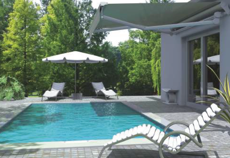 Modello ideale per la copertura residenziale di balconi e negozi dalle larghezze ridotte e dalle sporgenze elevate.