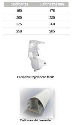 Le dimensioni massime consigliate sono di 480 cm di larghezza e 250 cm di sporgenza.