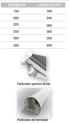 Dotata di tubo avvolgitore di diametro 70 (o 78). N.B.: per tutte le misure che non corrispondono alla tabella, chiedere se sono realizzabili ed eventuale preventivo. Per le tende assemblate superiori a 700 cm chiedere per il trasporto ed il preventivo.