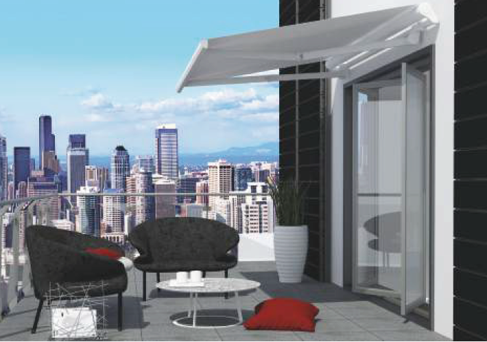 Comando ad argano R.1:11; possibilità di istallare motore o molla di compensazione. Modello ideale per la copertura di balconi, terrazzi e forniture condominiali. Le dimensioni massime consigliate sono di 1000 cm di larghezza e 350 cm di sporgenza.