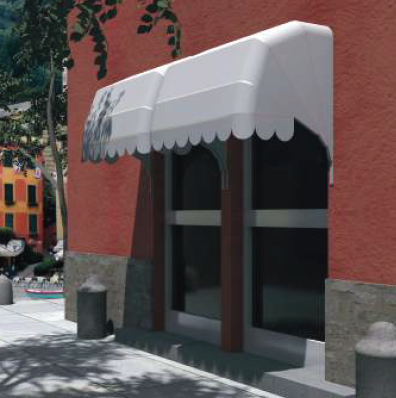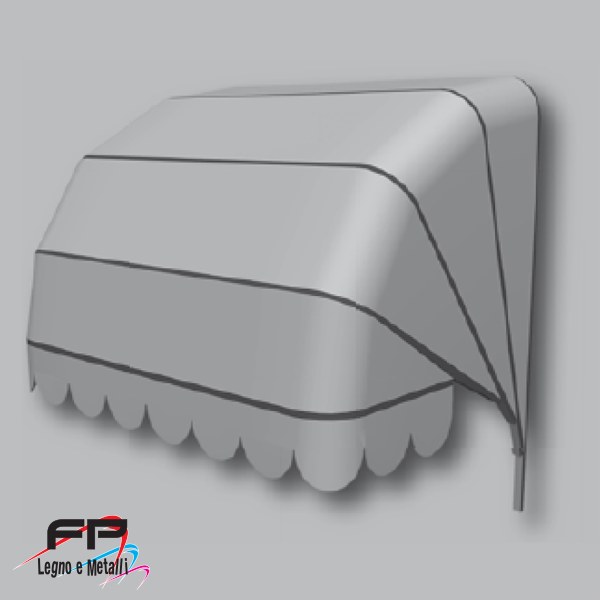 Tenda con richiamo a fune, particolarmente adatta per esercizi commerciali ed in genere per vetrine, finestre e balconi.